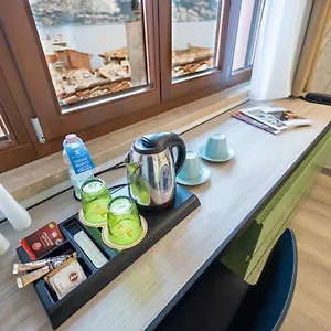 Einige Zimmer bieten auch einen Ausblick auf den See und umfassen einen Safe, einen Balkon und eine Kaffeemaschine. In den privaten Badezimmern gibt es ein Bidet, eine getrennte Toilette und eine Dusche sowie einen Haartrockner und Toilettenartikel. Es bietet Zimmer mit Blick auf den Gardasee.